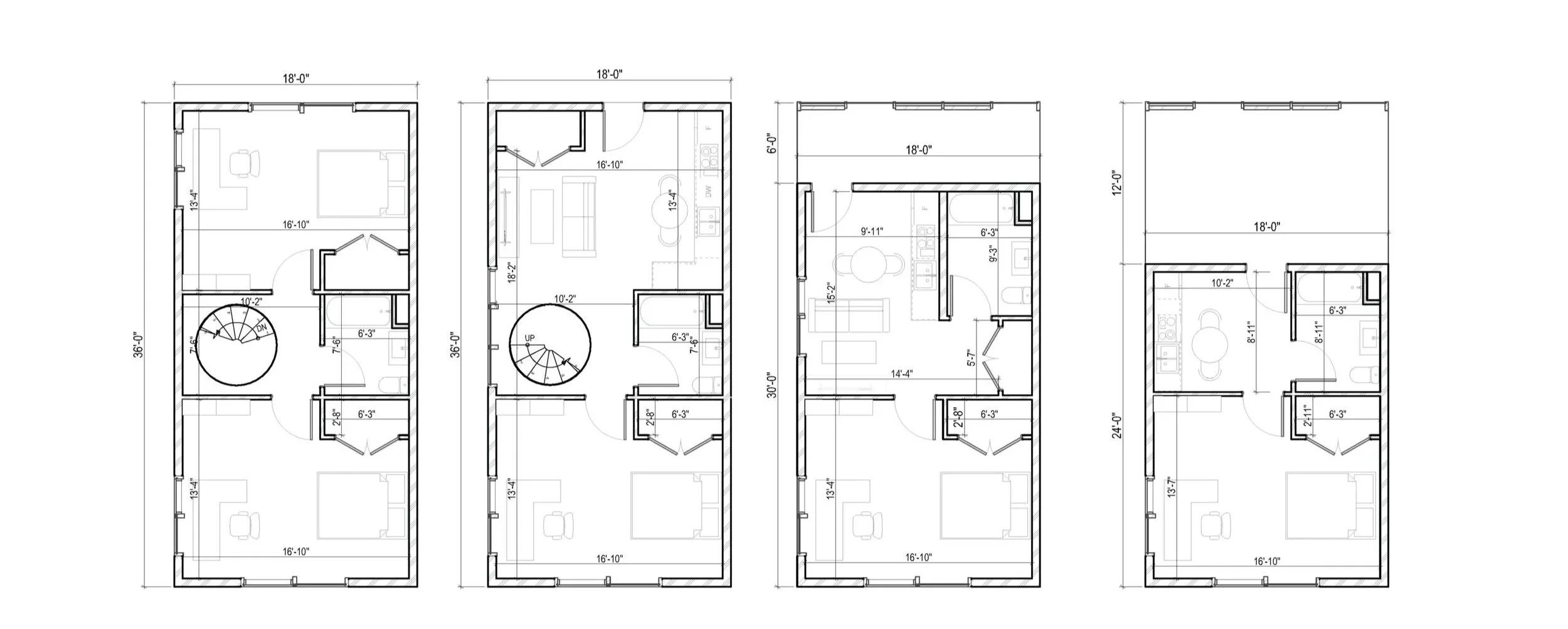 Facing the shared courtyard, each unit opens to an individual entry along a continuous corridor. Wrapped in the same aluminum cladding, the façade maintains visual coherence while defining a soft transition between collective and private spaces.